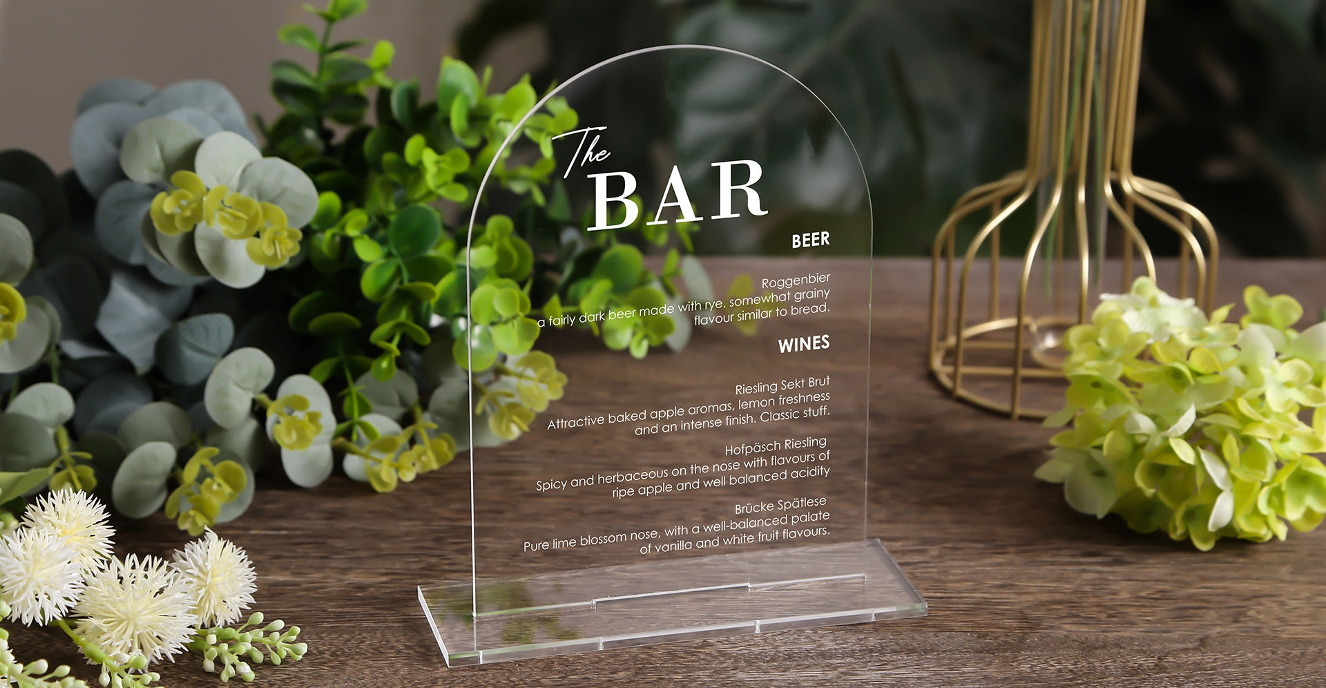 Acrylic ornaments are so easy to create because they are transparent. Which makes drawing your designs as easy as tracing them! Another great thing about acrylic blanks is that you can paint them to match any color scheme. It’s easy to see why acrylic signs are trending in event designs for all types of celebrations!