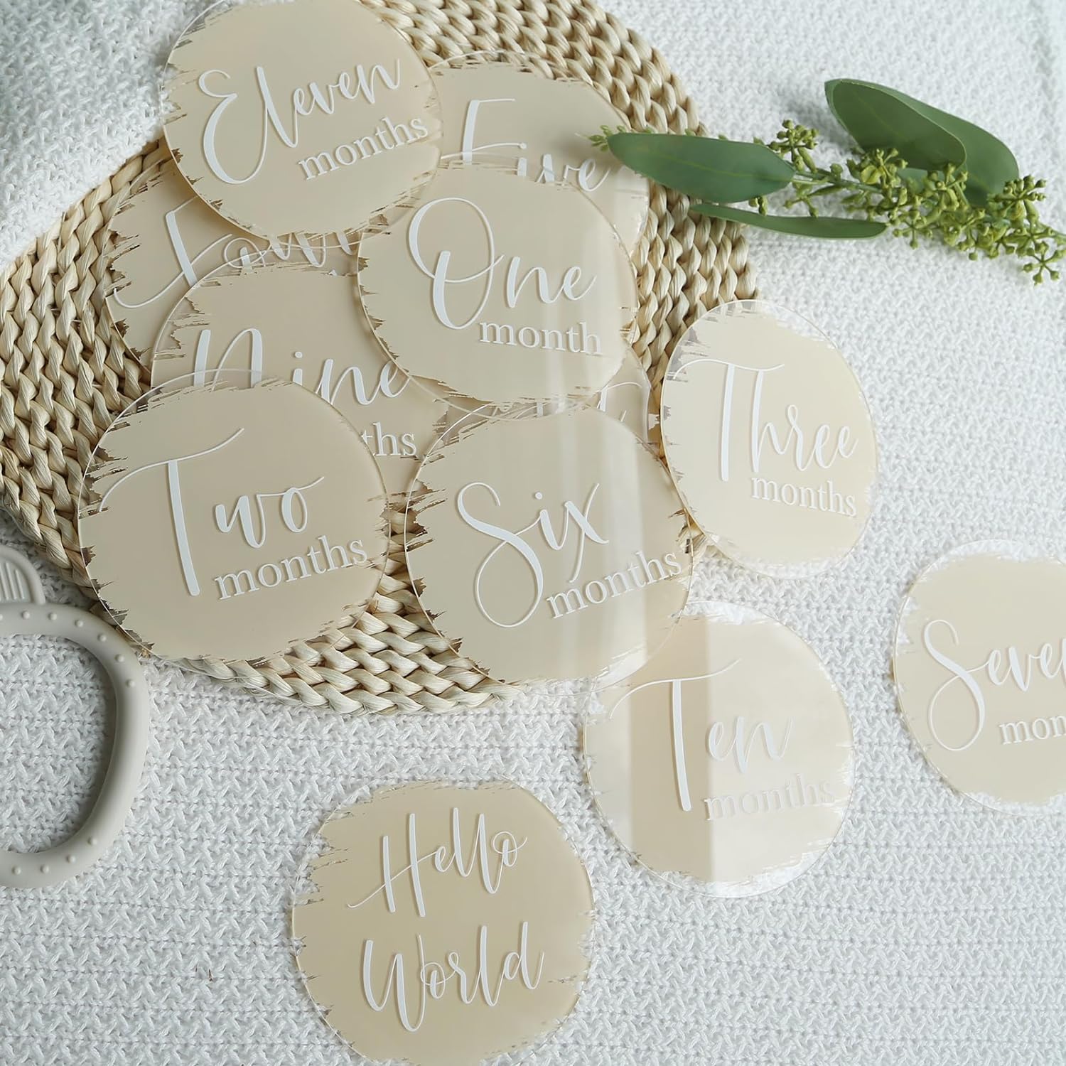 Beige Baby Monthly Milestone Cards Set of 13 with Script