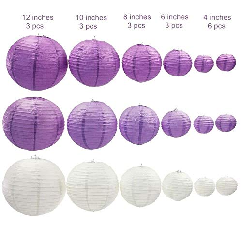 UNIQOOO 18Pcs Premium Assorted Size/Color Purple Paper Lantern Set, Reusable Hanging Decorative Japanese Chinese Paper Lanterns, Easy Assemble, for Birthday Wedding Baby Shower Holiday Party ( Only Delivery to US)