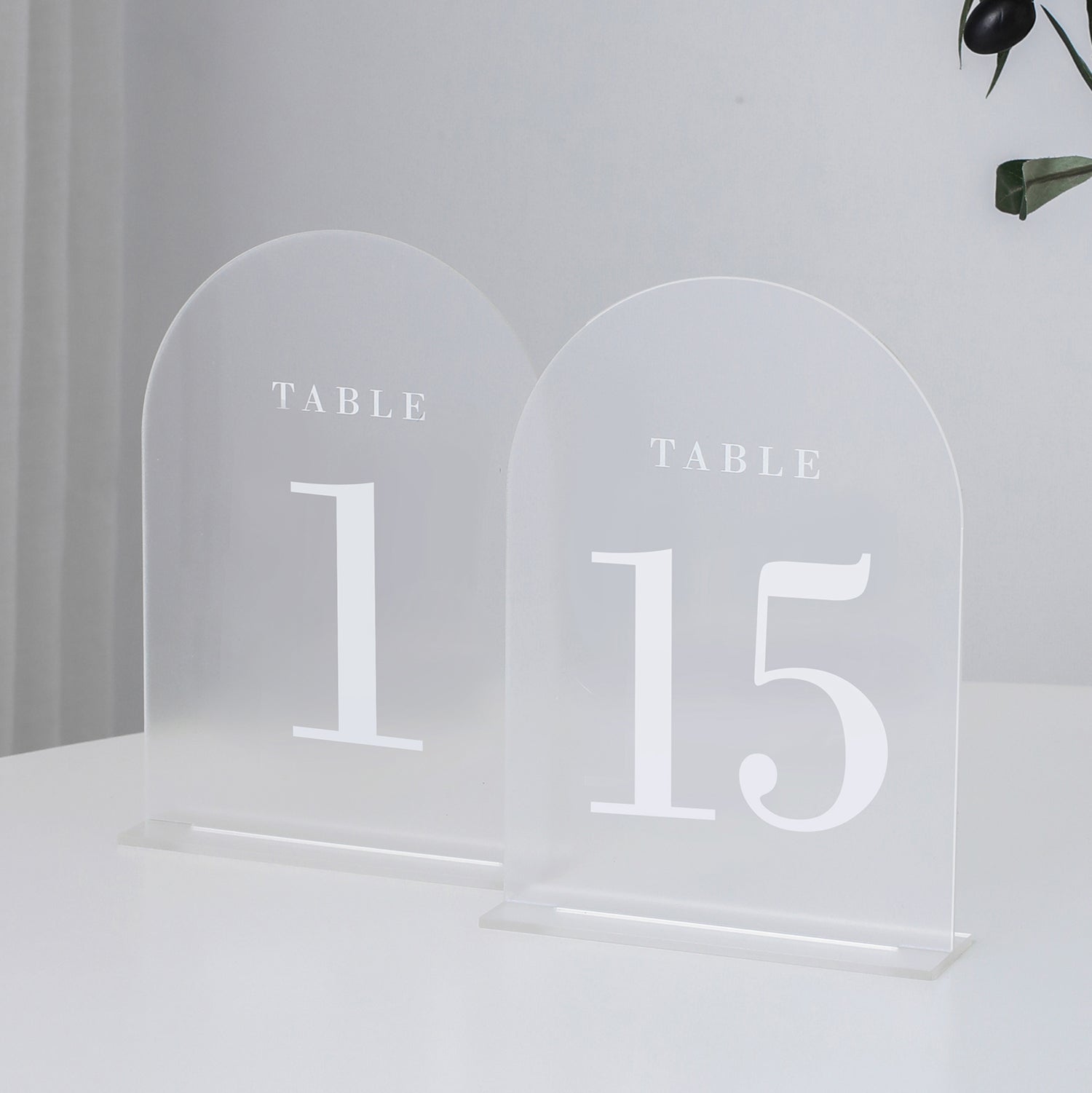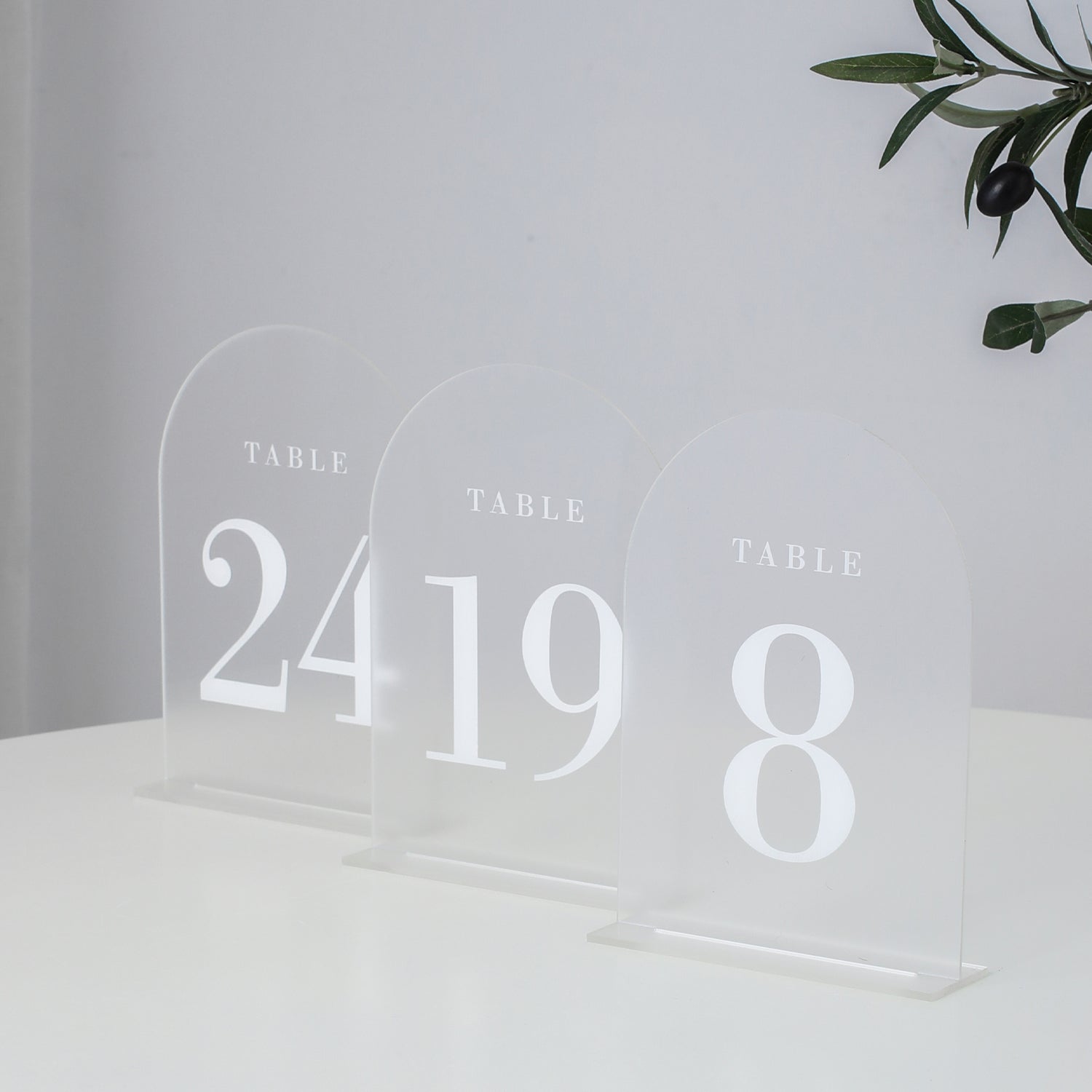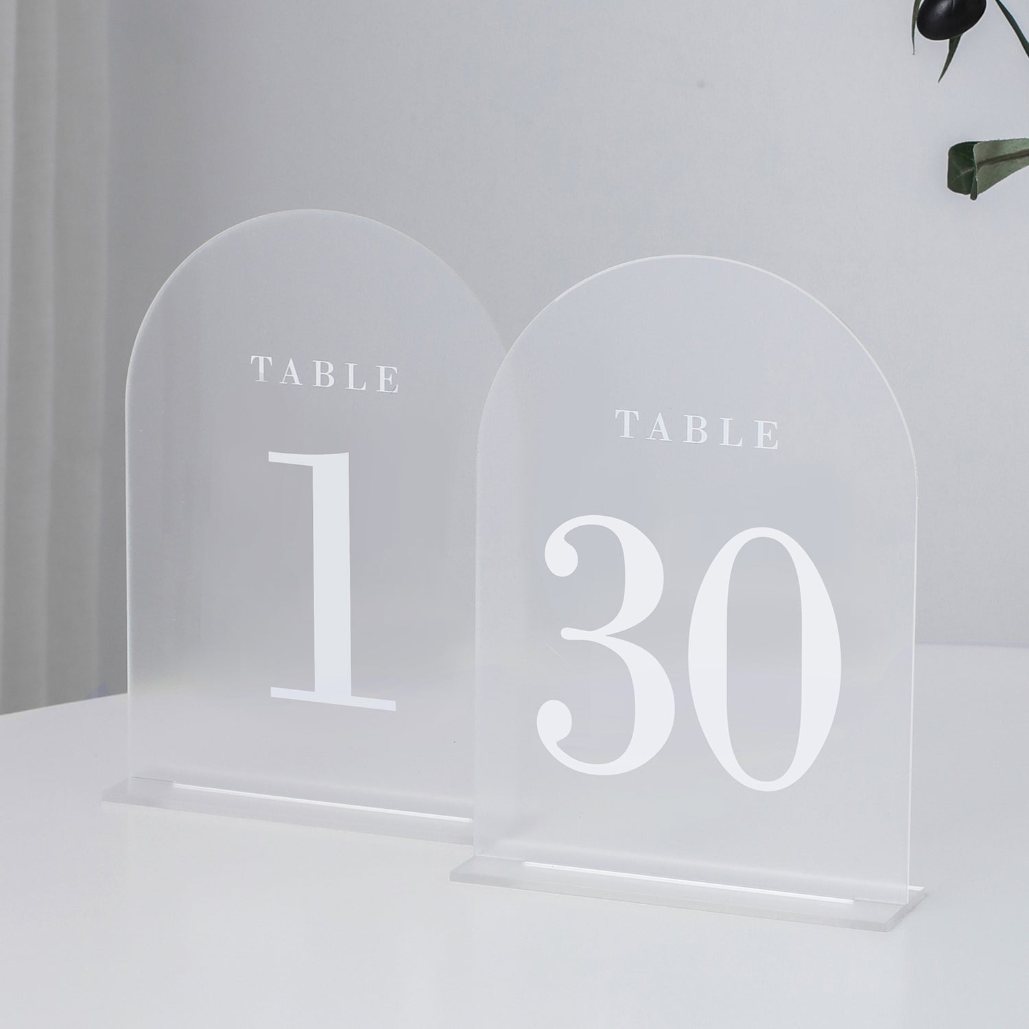 Frosted Arch Wedding Table Numbers with Stands 1-30