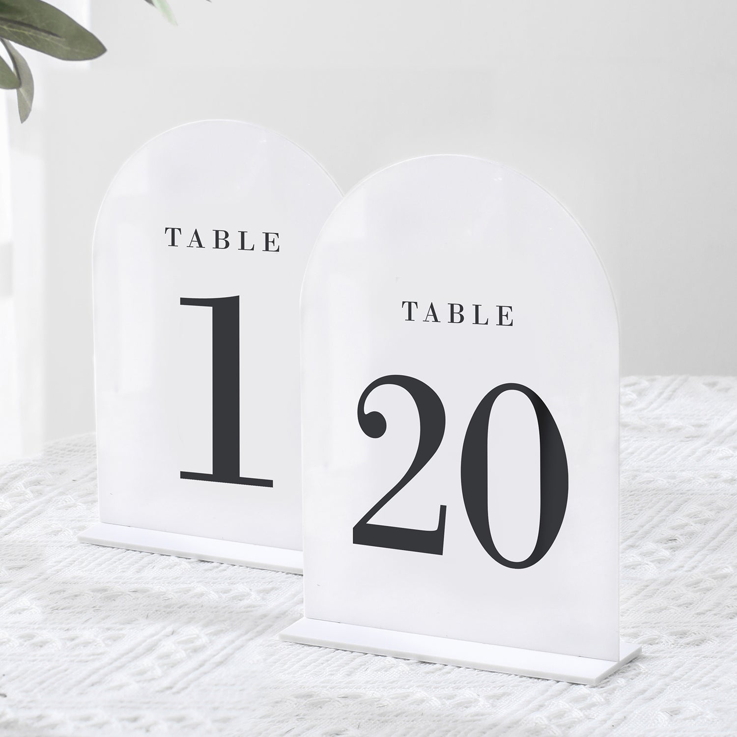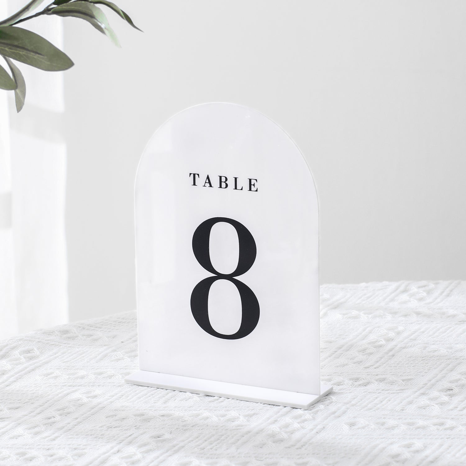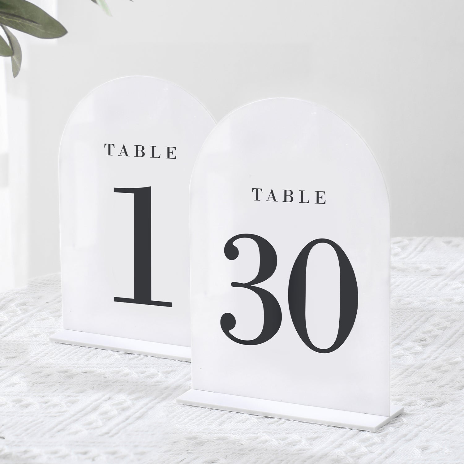 Frosted Arch Wedding Table Numbers with Stands 1-30