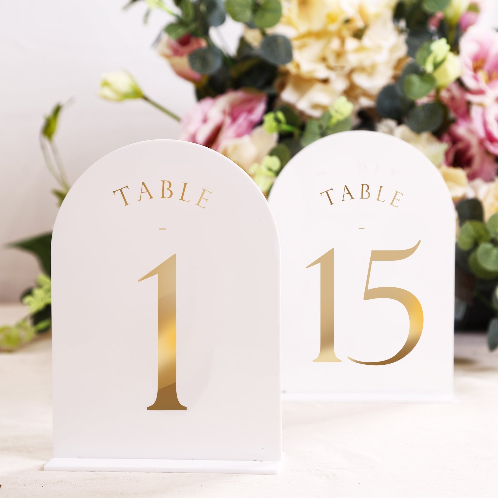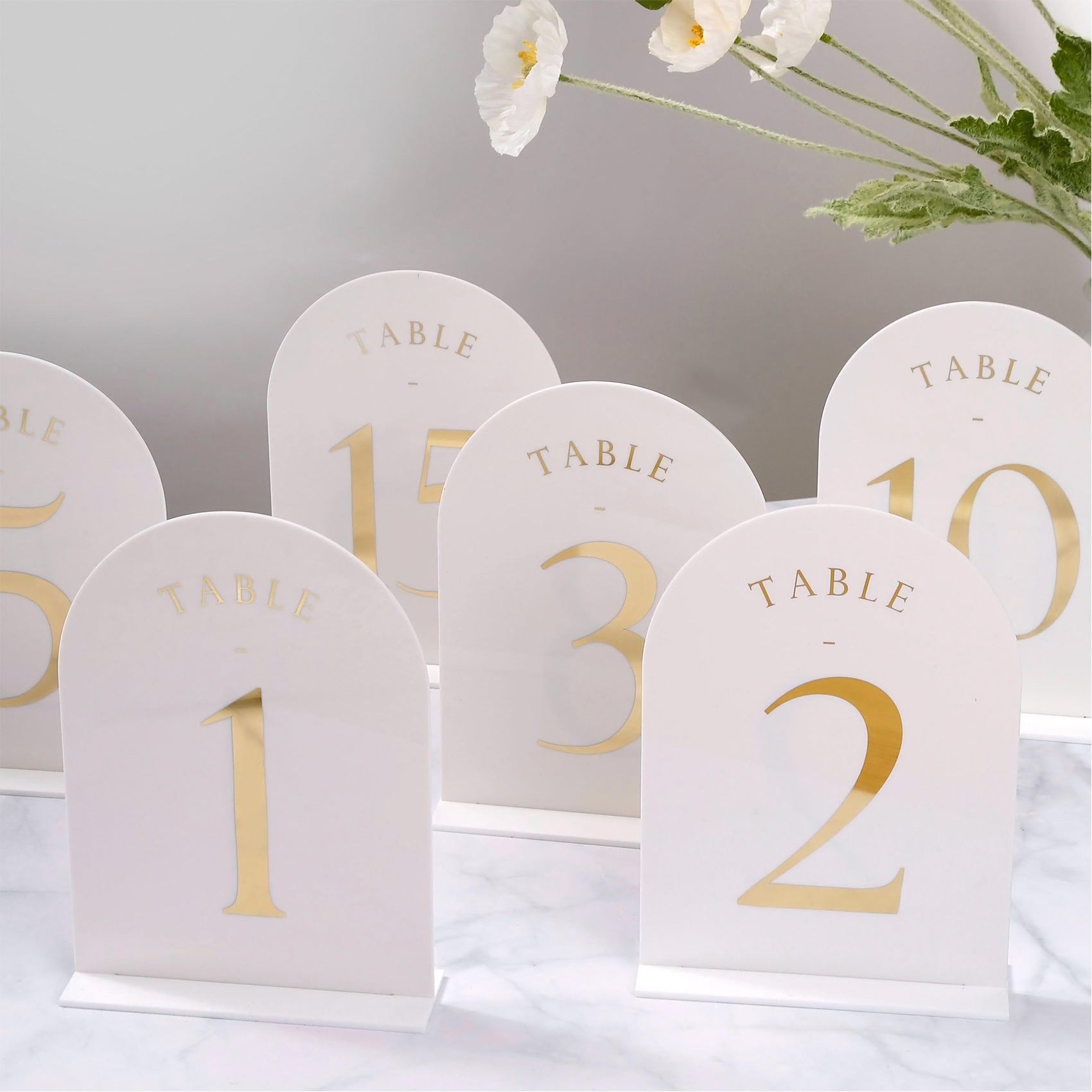 Frosted Arch Wedding Table Numbers with Stands 1-15
