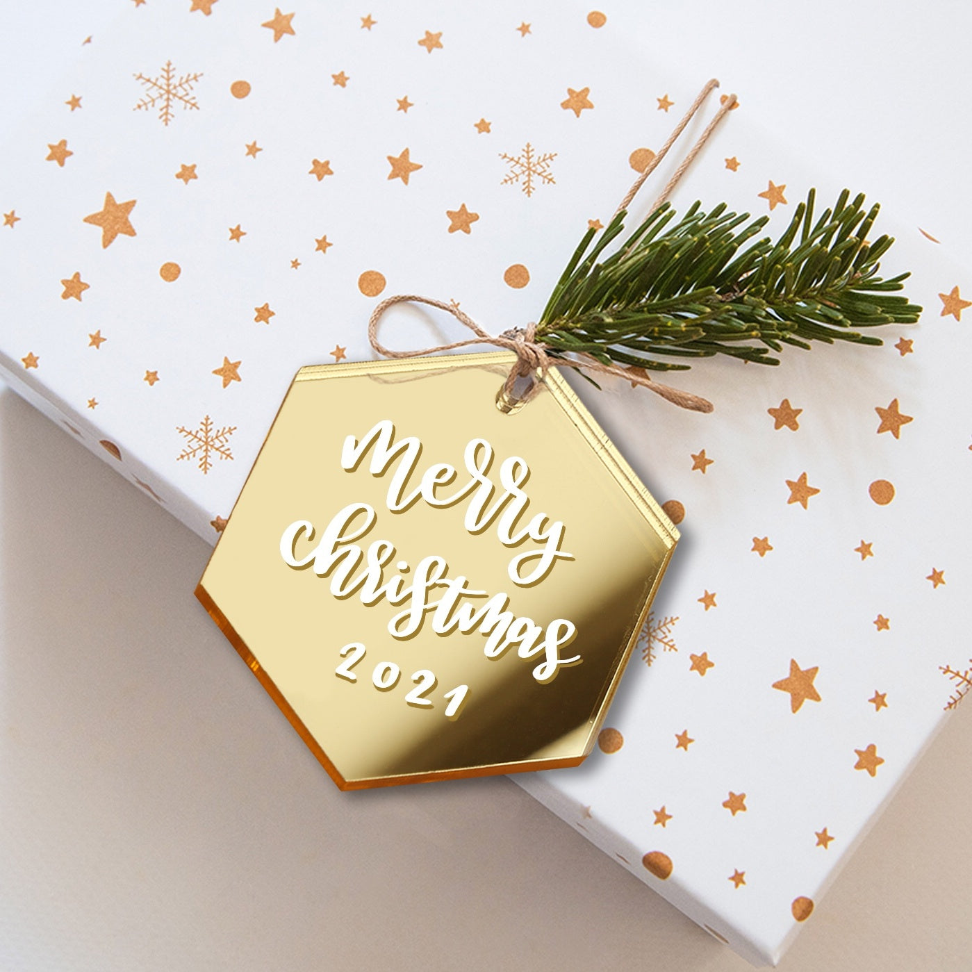 3" Hexagon Gold Mirrored Acrylic Christmas Ornament, 20 Pack