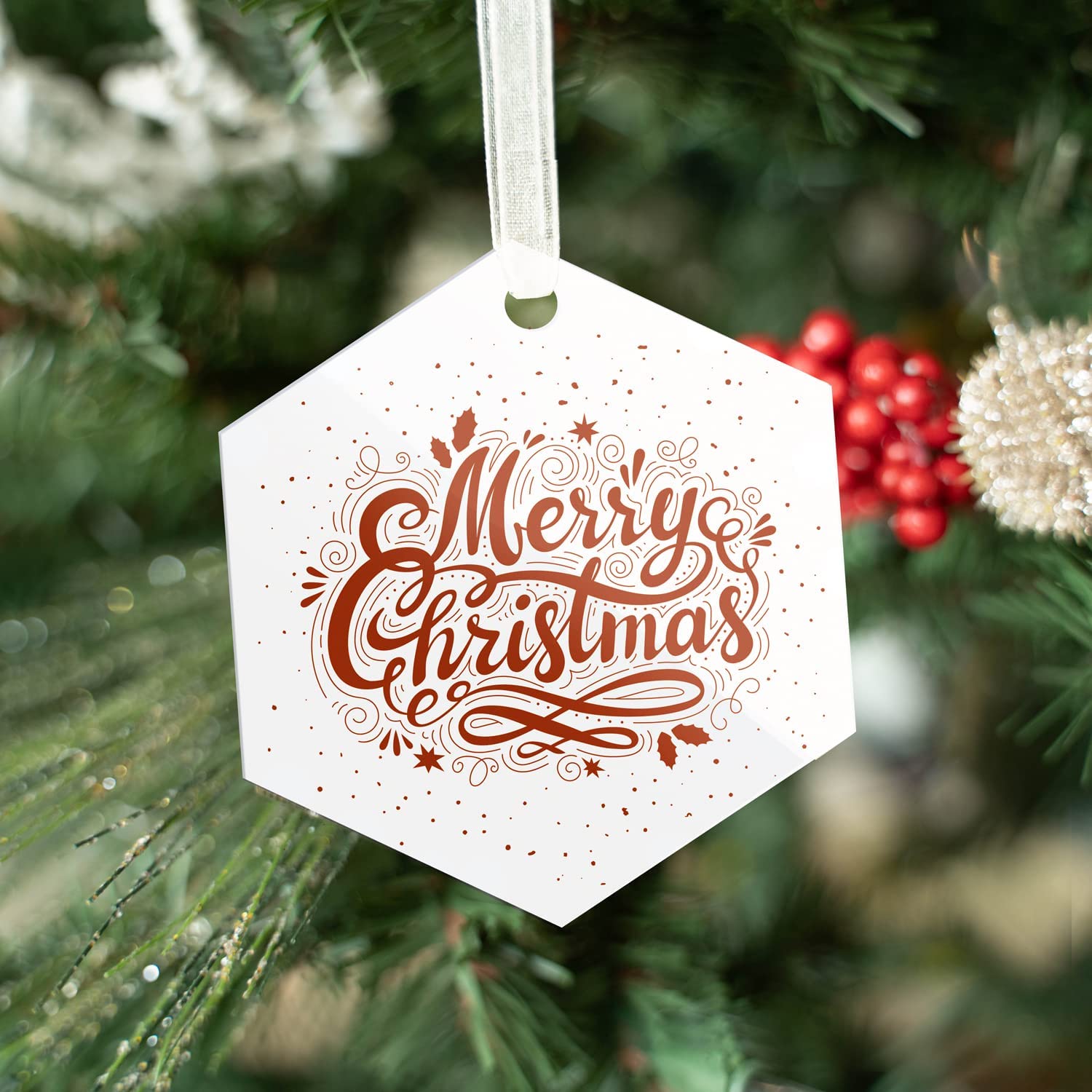 3" White Hexagon Acrylic Christmas Ornament, 18 Pack