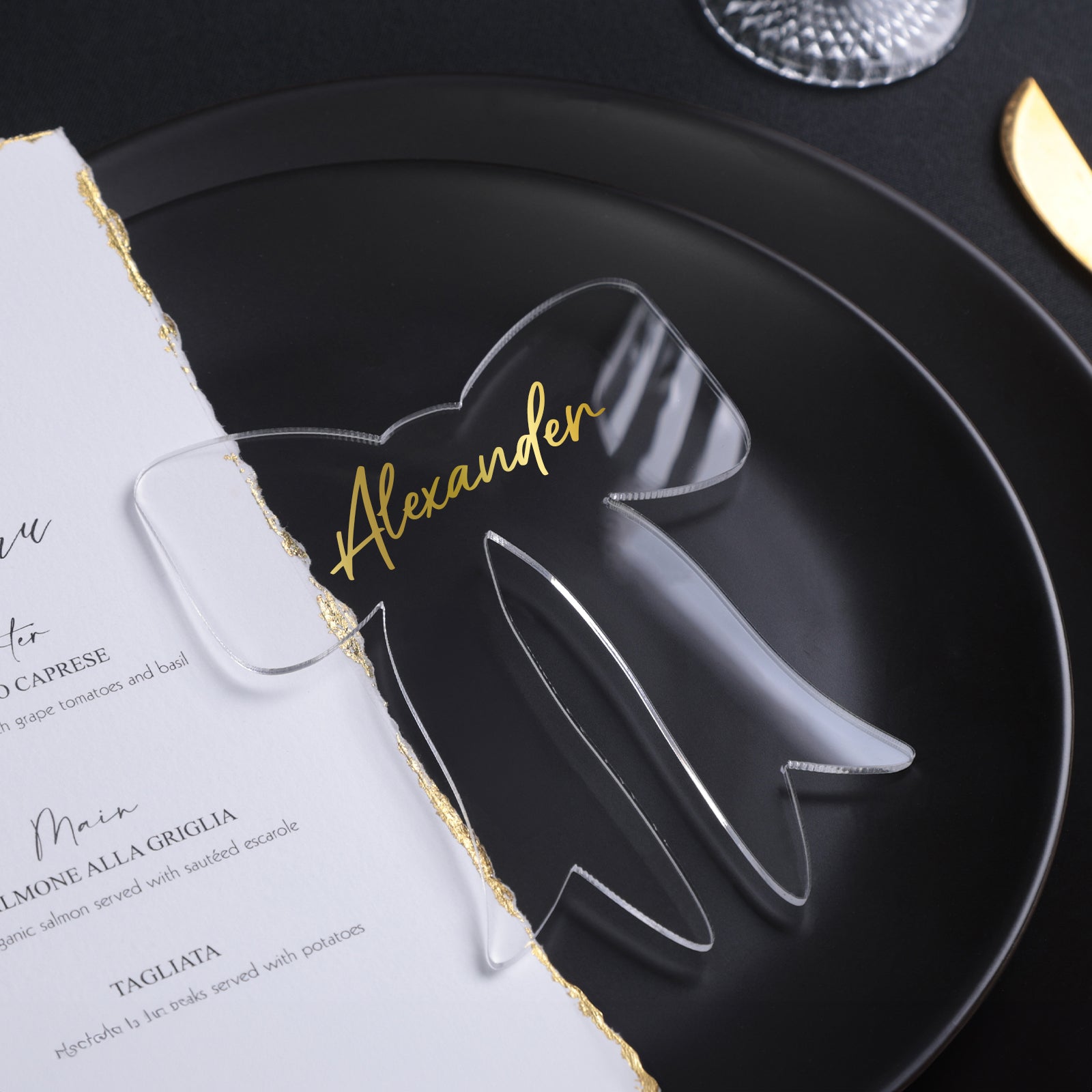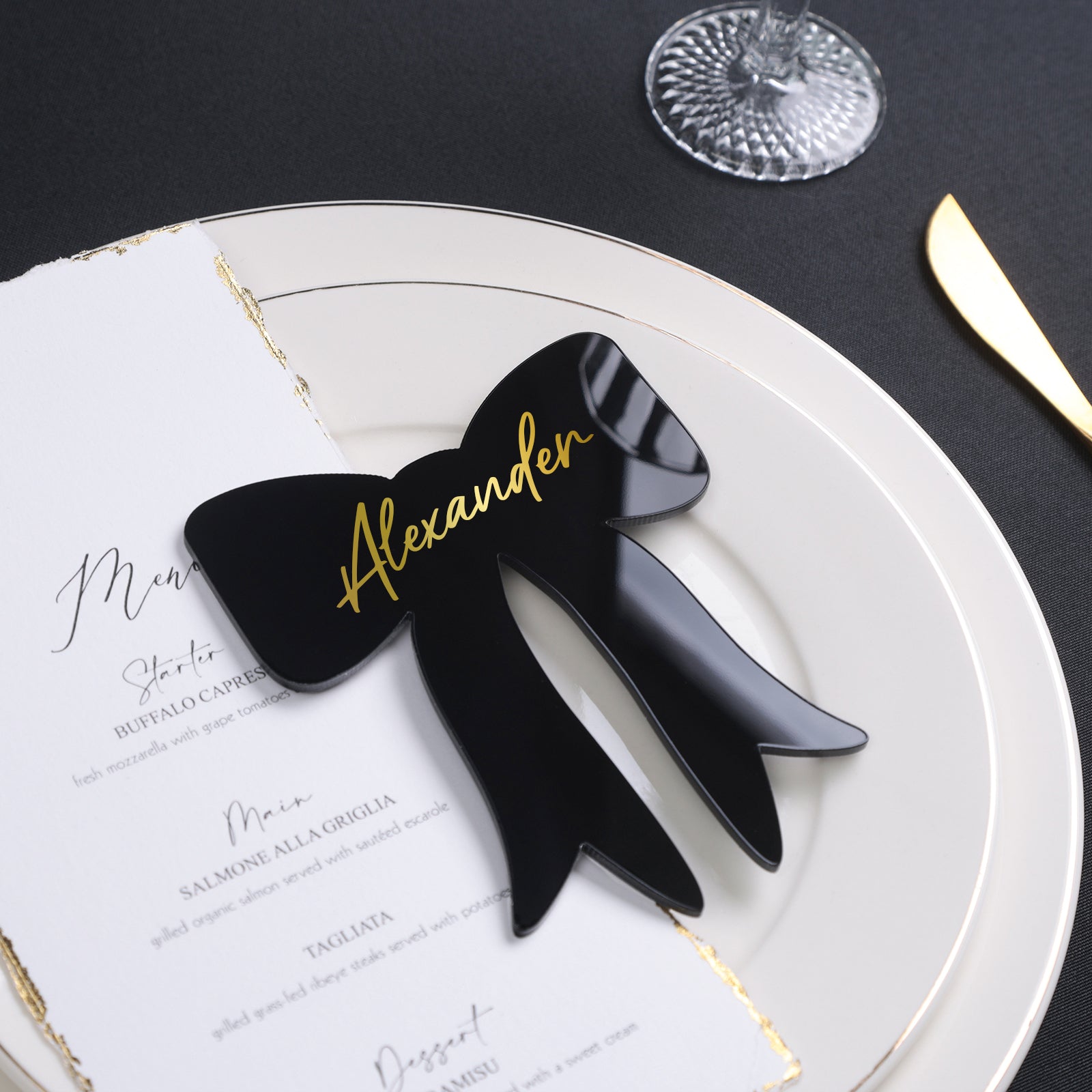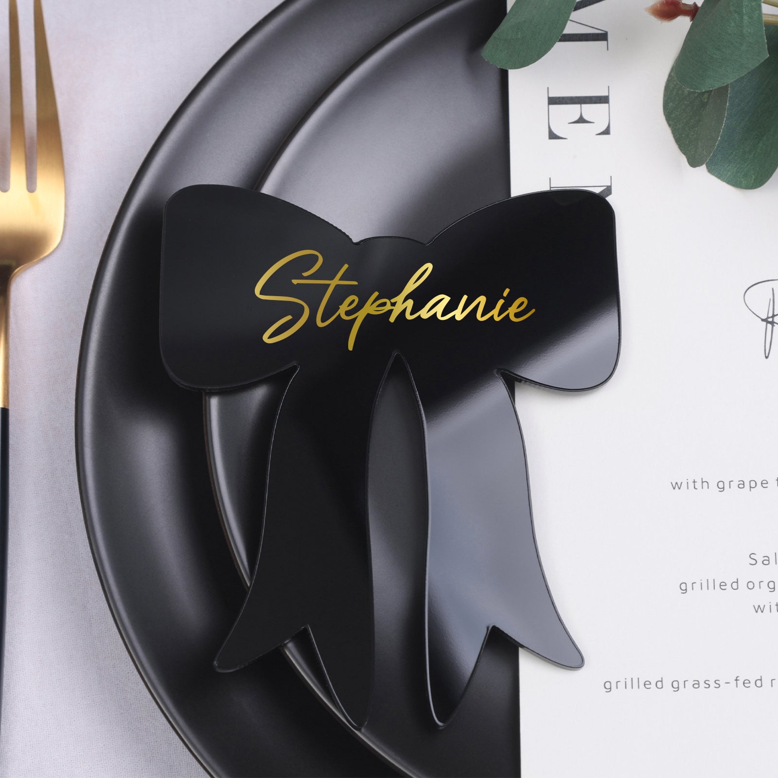 UNIQOOO 12Pcs Elegant Black Bow Acrylic Place Cards, 4.7x3.9 inches DIY Blank Ribbon Bow Tags, Perfect for Wedding Table Decor, Birthday Party Decorations, Centerpiece, Anniversary, Event