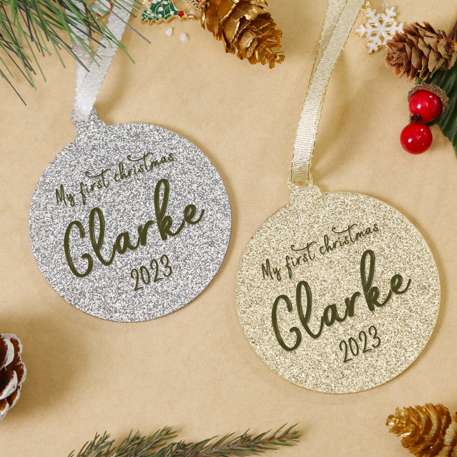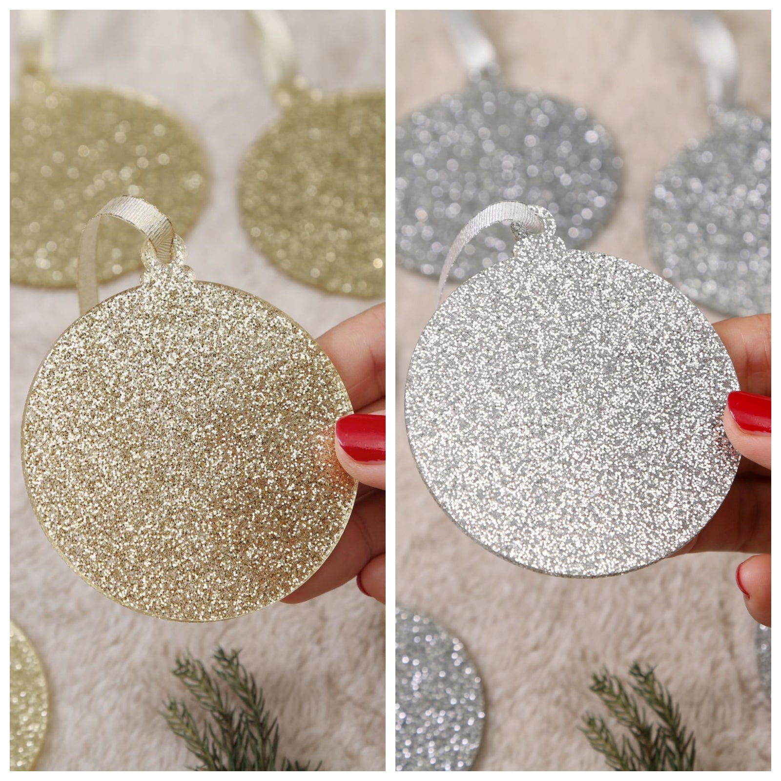 Acrylic Sparkle Glitter Christmas Ornaments Set, 3", 3mm Thick, Round (Light Gold & Silver Glitter)