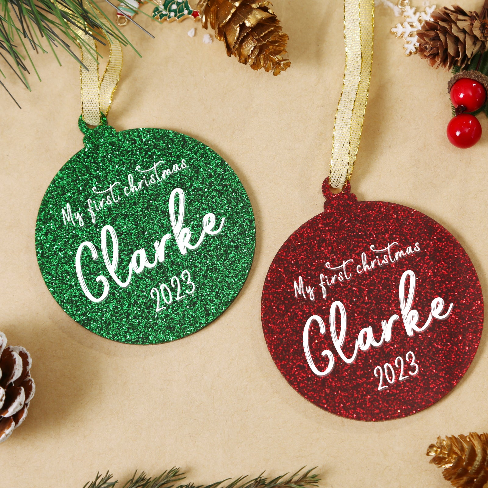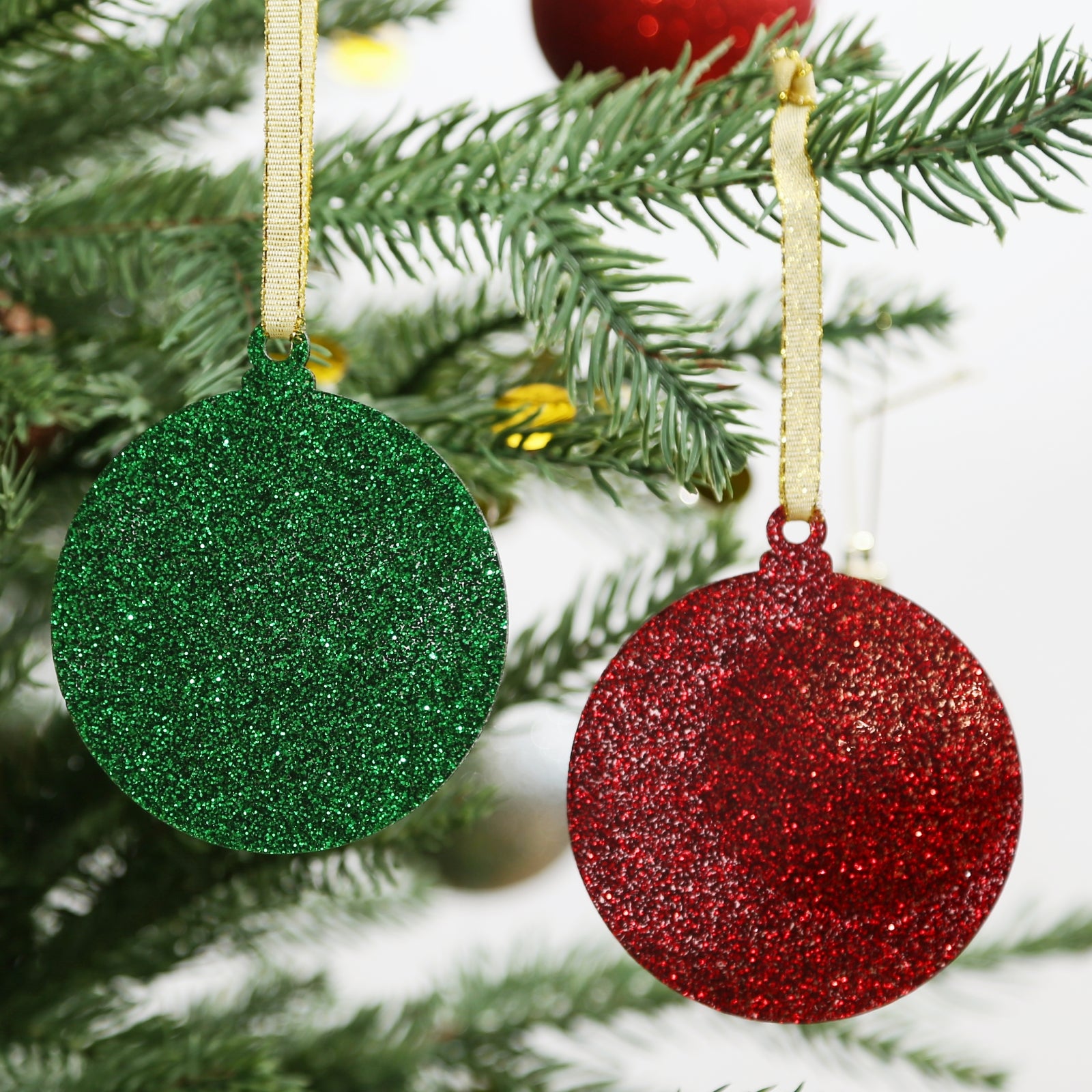 Acrylic Sparkle Glitter Christmas Ornaments Set, 3", 3mm Thick, Round (Red & Green Glitter)