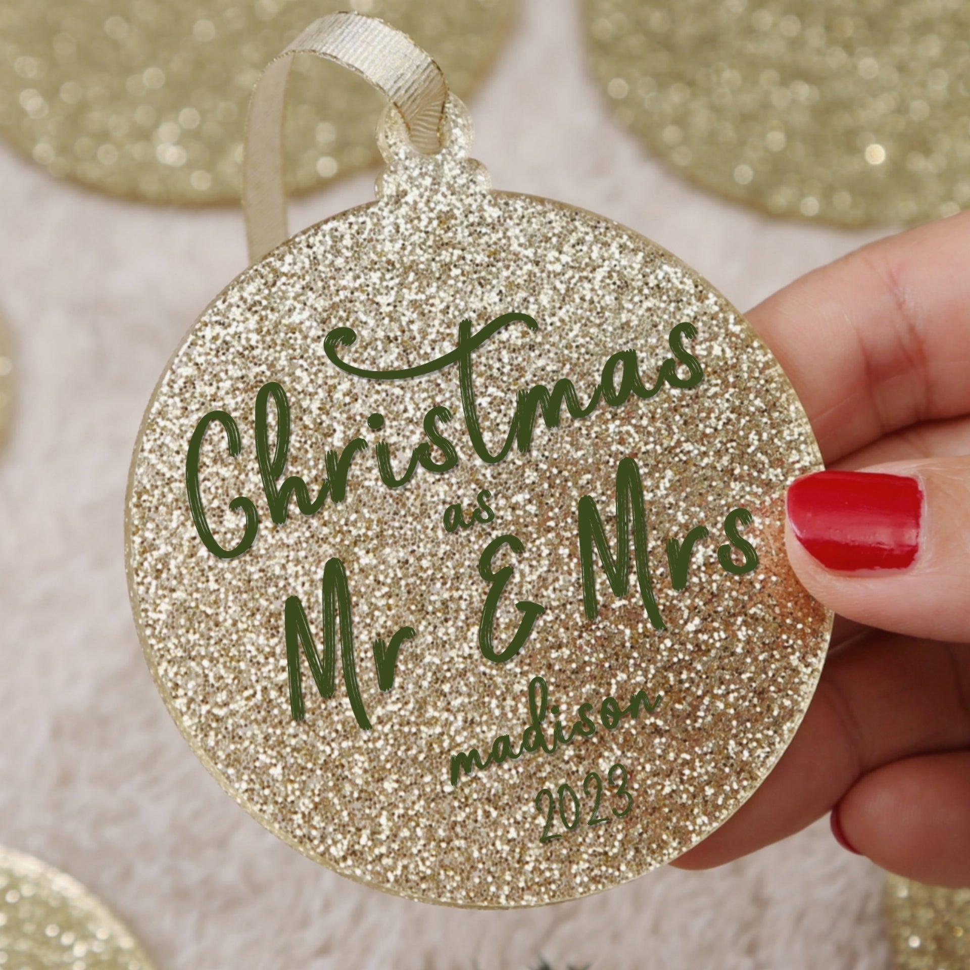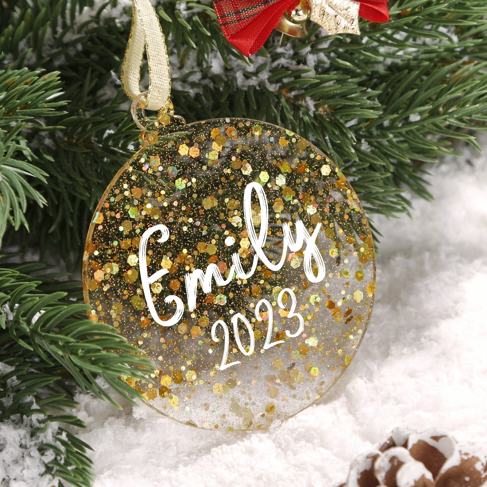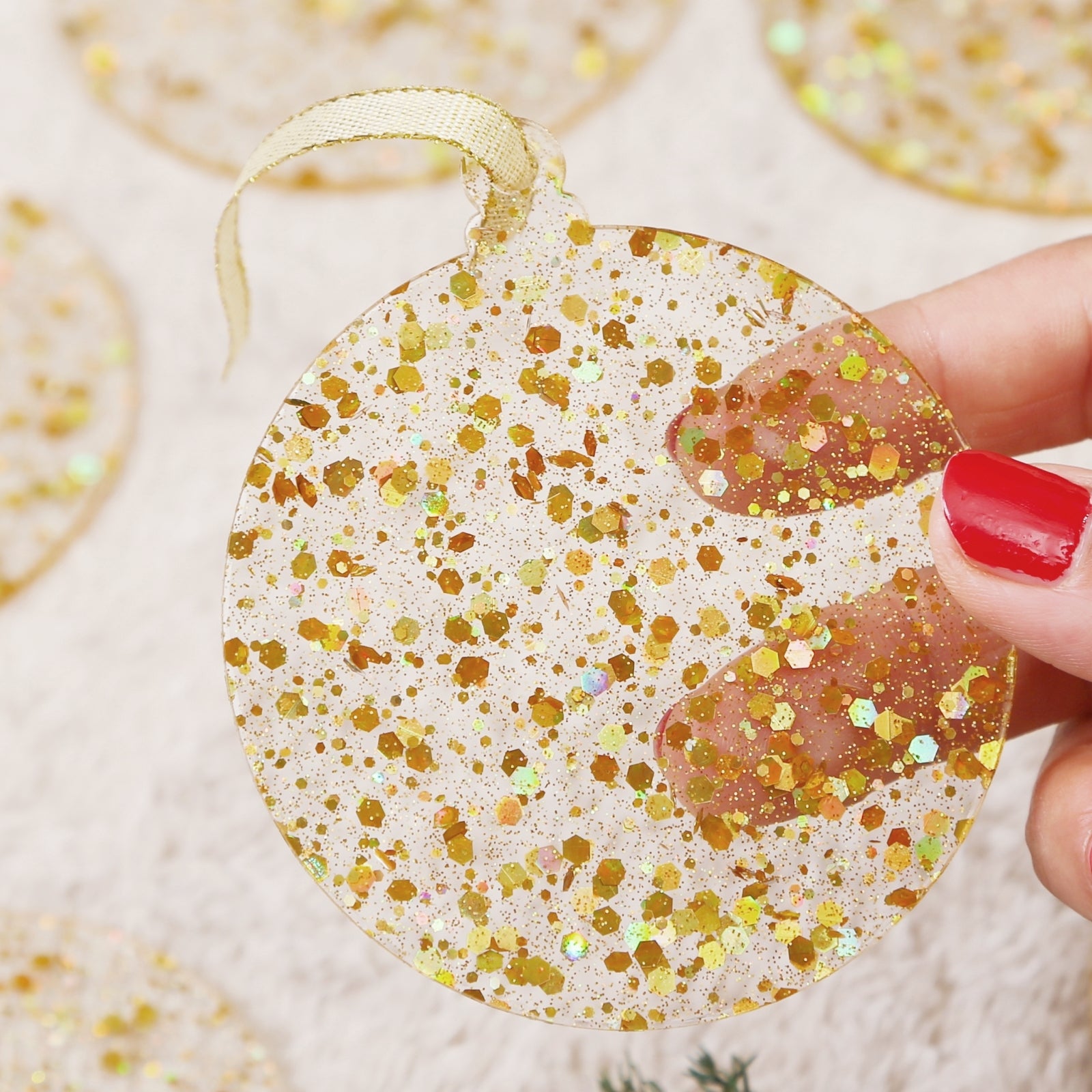 Acrylic Light Gold Glitter Christmas Ornaments Set, 3", 3mm Thick, Round (Light Gold Glitter)