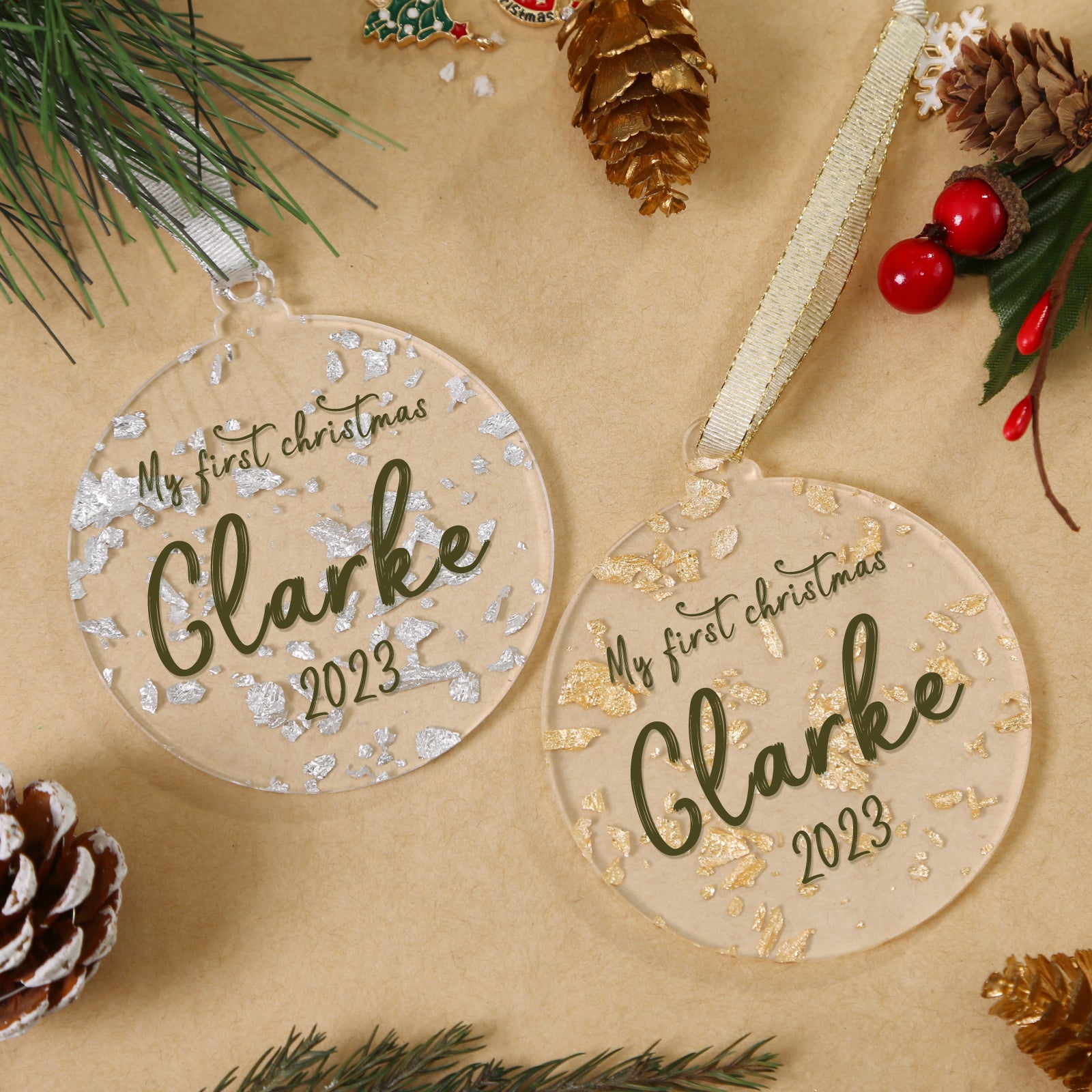 Acrylic 2023 Gold Leaf flakes Christmas Ornaments Set, 3", 3mm Thick, Round (Gold & Silver Foil Flakes)