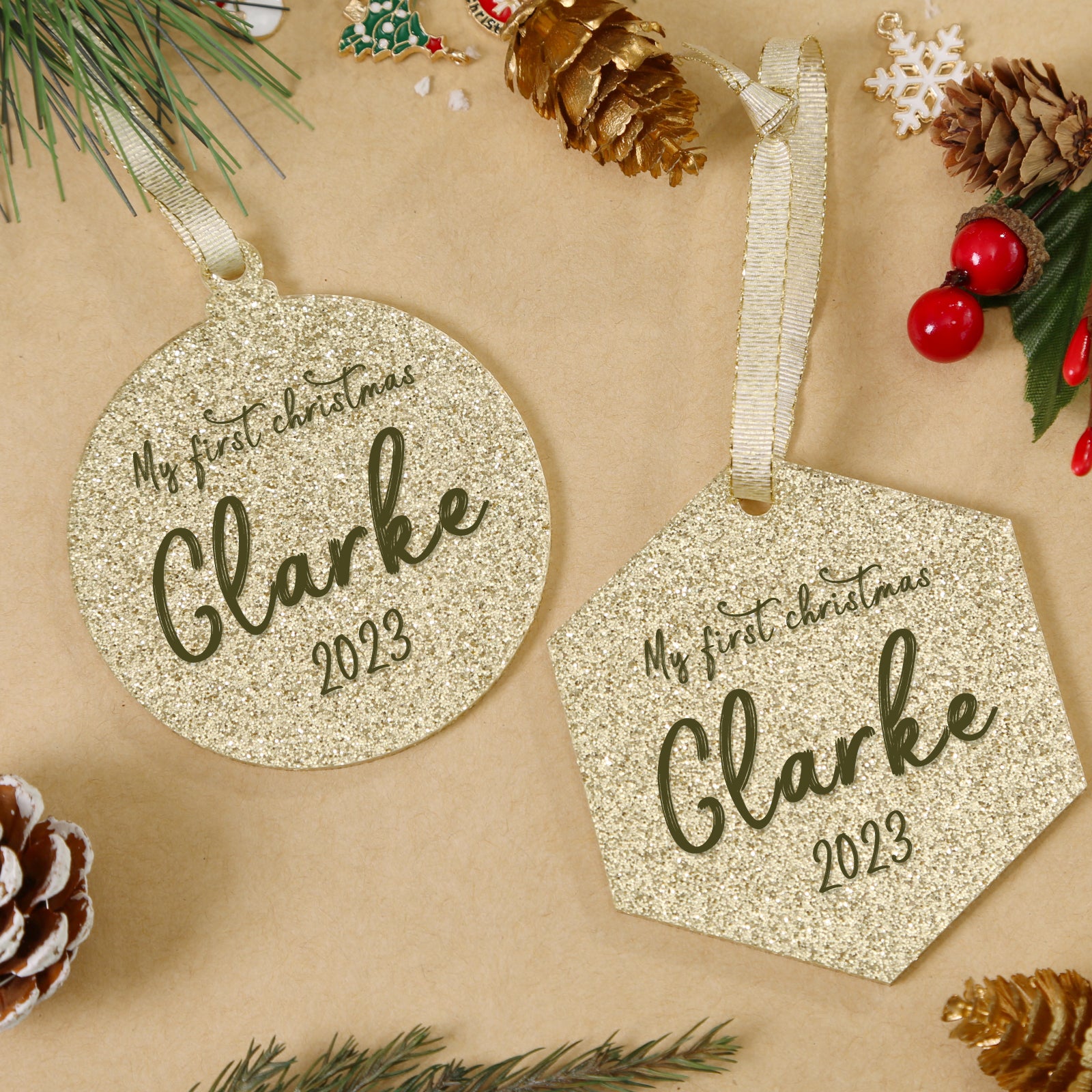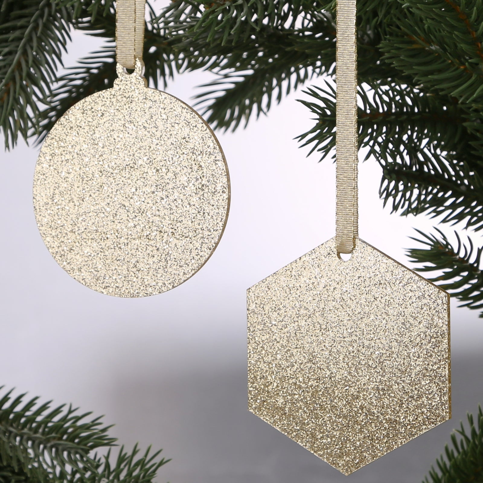 Acrylic Light Gold Glitter Christmas Ornaments Set, 3", 3mm Thick, Round & Hexagon (Light Gold Glitter)