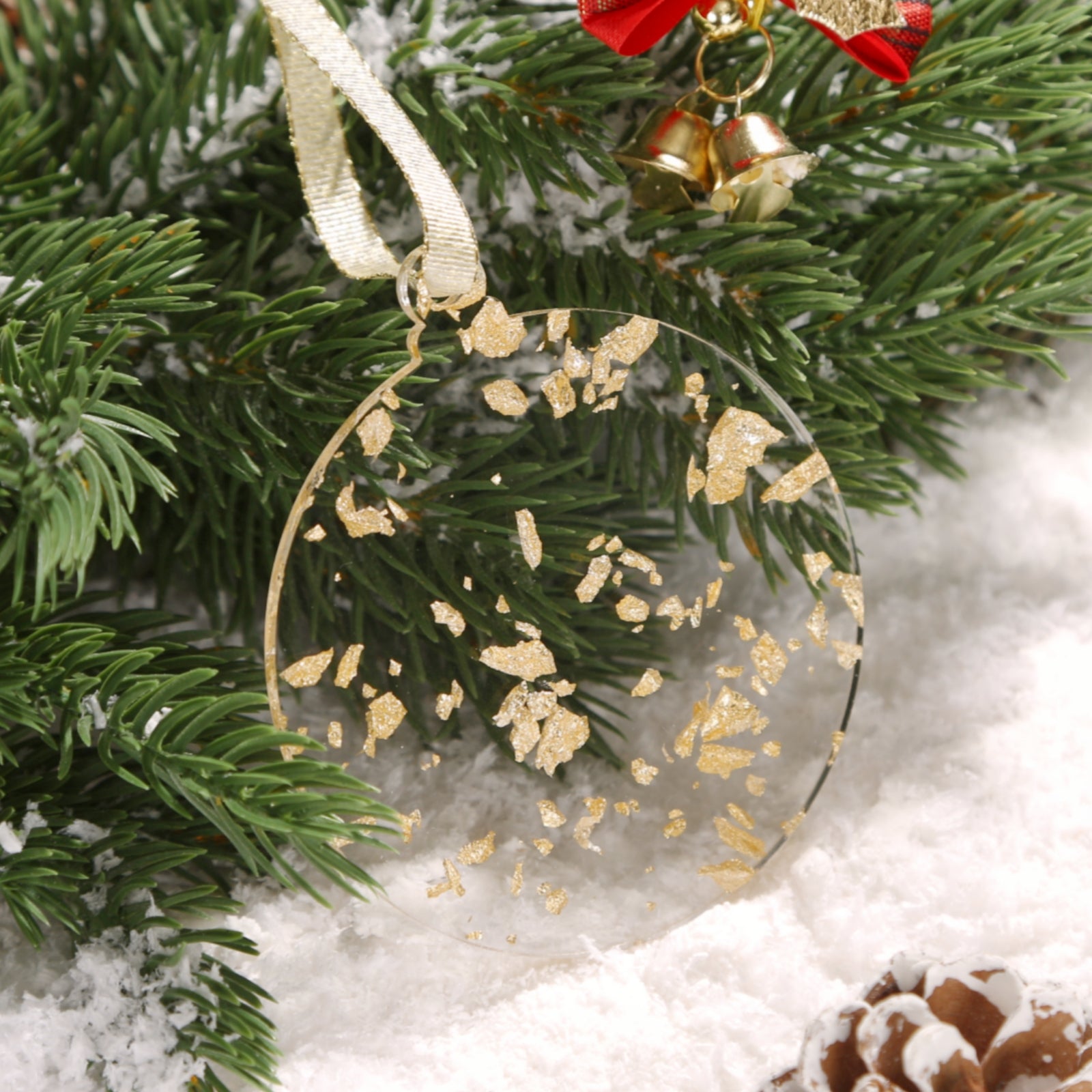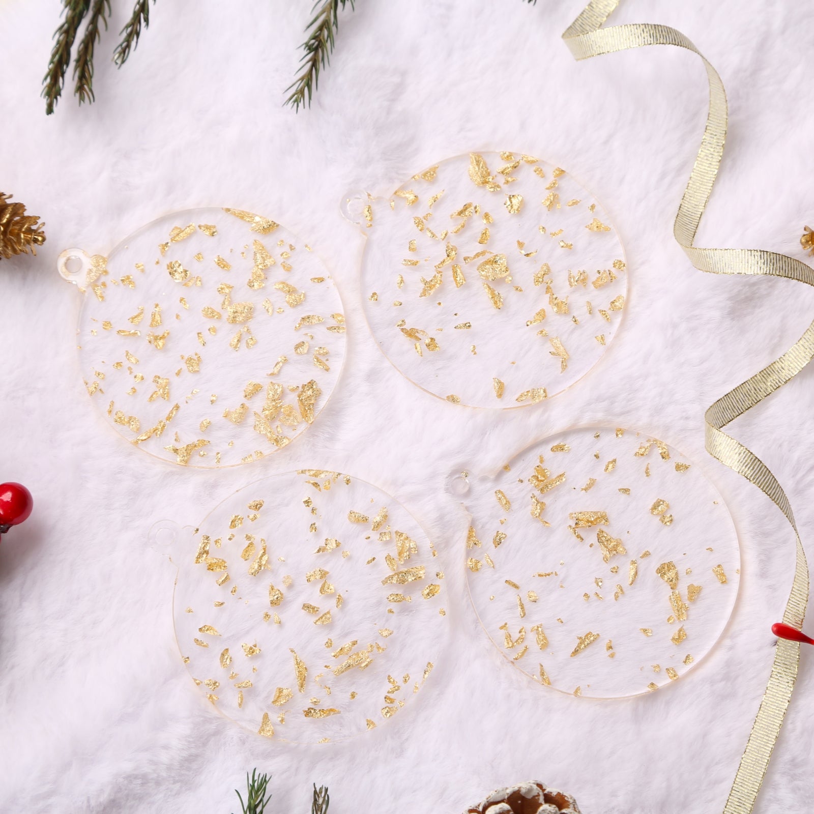 Acrylic Ornaments Set of 12, Gold Leaf Flakes Christmas Ornaments, Xmas Tree Decor, 3", 3mm Thick Round