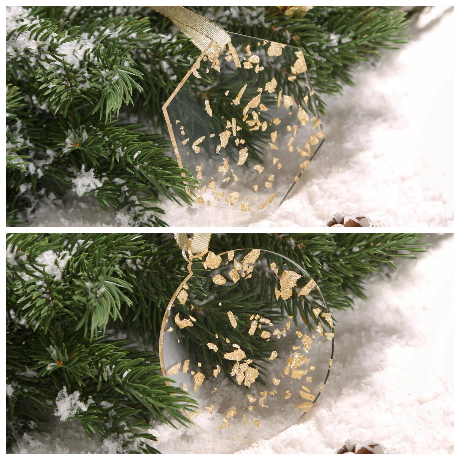 Acrylic Light Gold Leaf Flakes Christmas Ornaments Set, 3", 3mm Thick, Round & Hexagon (Gold Foil Flakes)