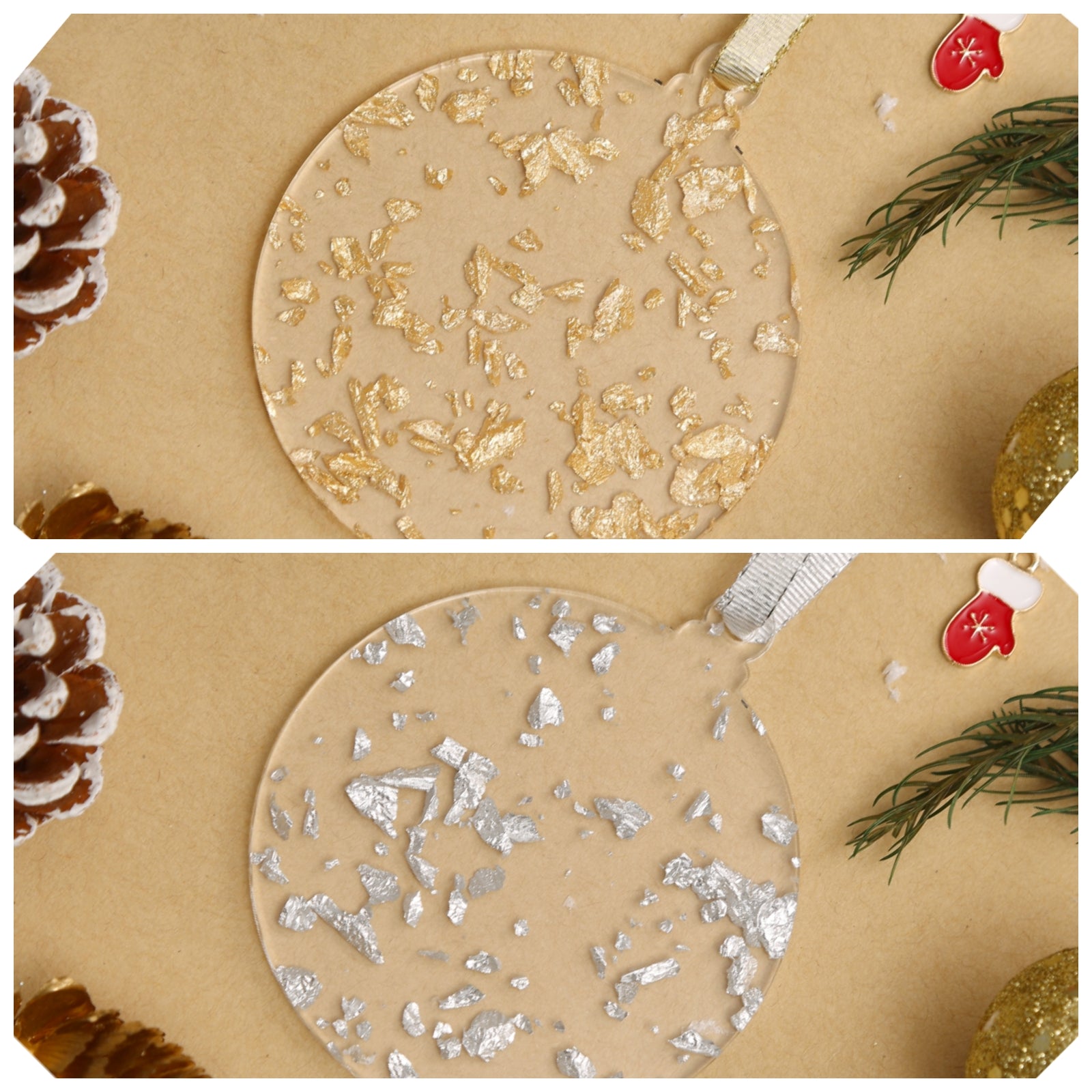 Acrylic Silver Leaf Flakes Christmas Ornaments Set, 3", 3mm Thick, Round & Hexagon (Silver Foil Flakes)