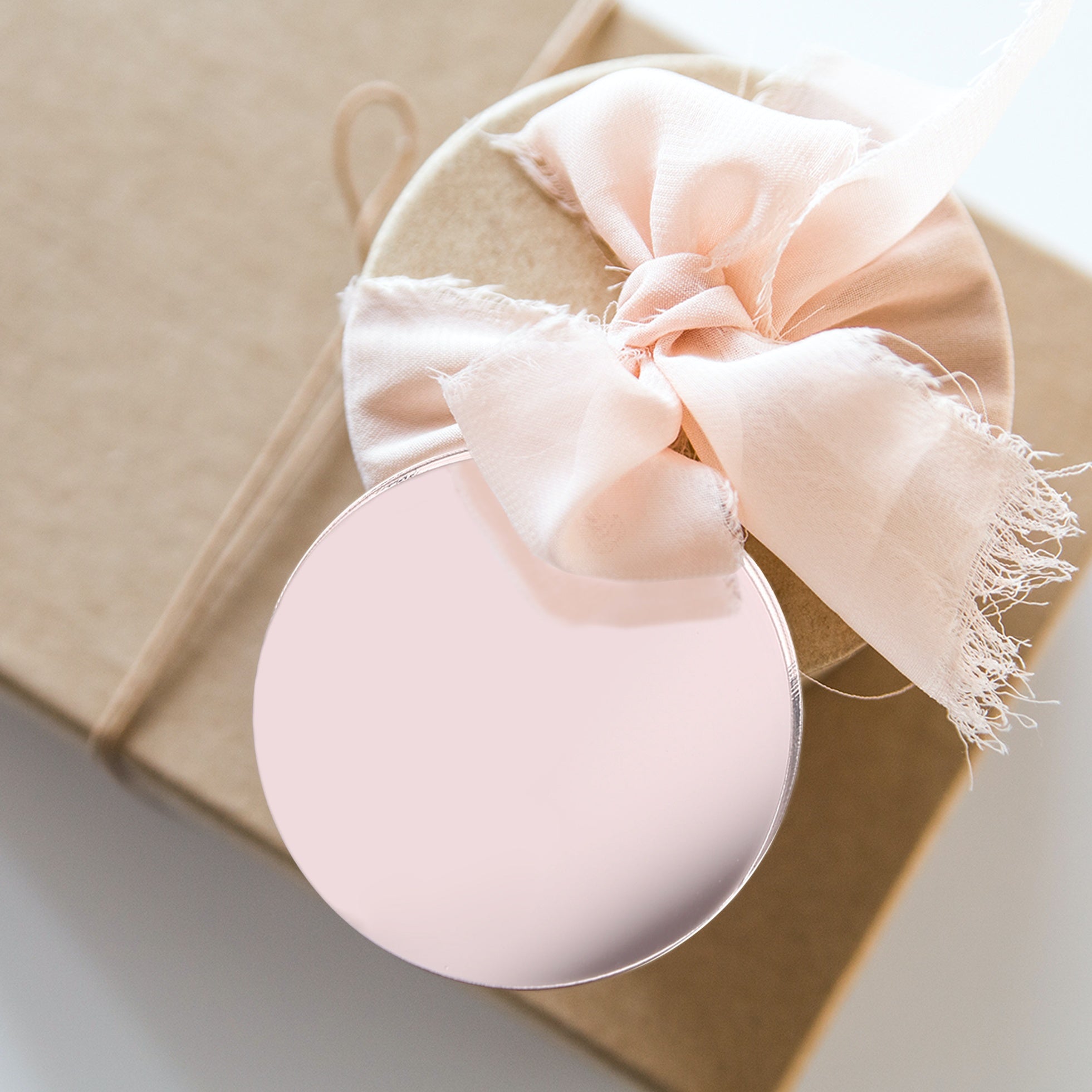 3" Circle Rose Gold Mirrored Acrylic Christmas Ornament, 20 Pack