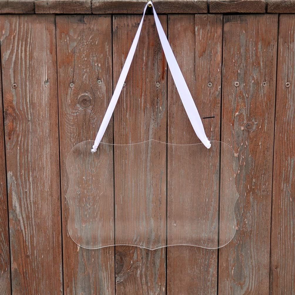 Custom DIY Clear Blank Acrylic Hanging Sign | Elegant Wedding Chair Signs White Satin Ribbon For Bride & Groom , 8x12 inch, Pack of 160