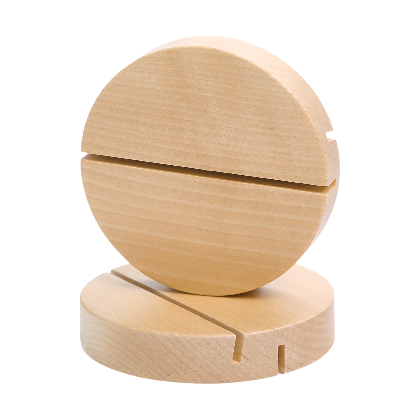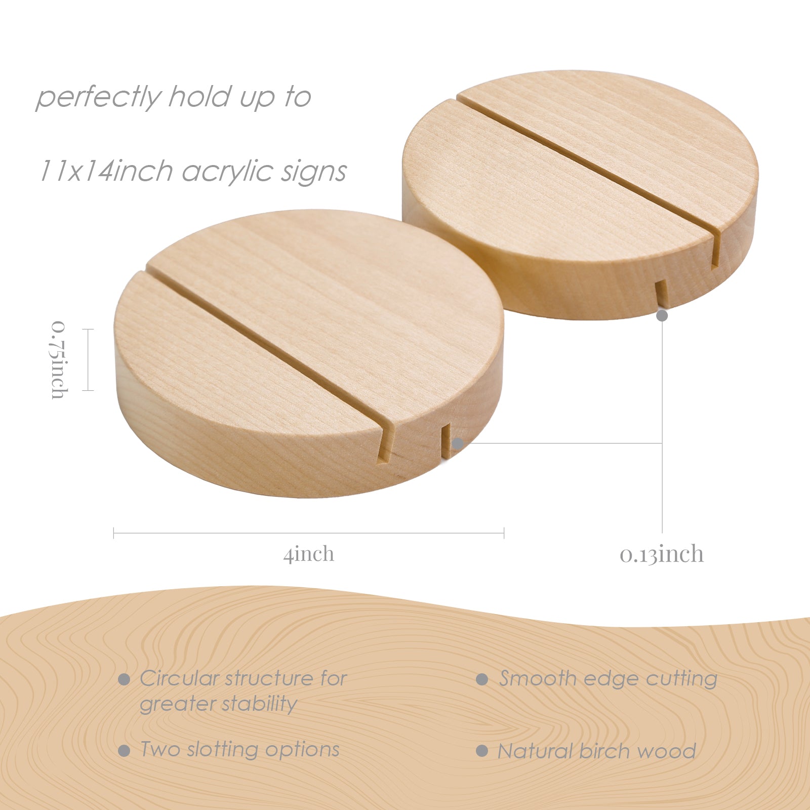 UNIQOOO 6 Pack 4" Round Birch Wood Stands for Wedding Acrylic Sign, Wood Table Number Holders for 1/8 Thick Acrylic Sheets | Wedding Display Stand, Card Holder for Bar Menu, Retail Sign, Party