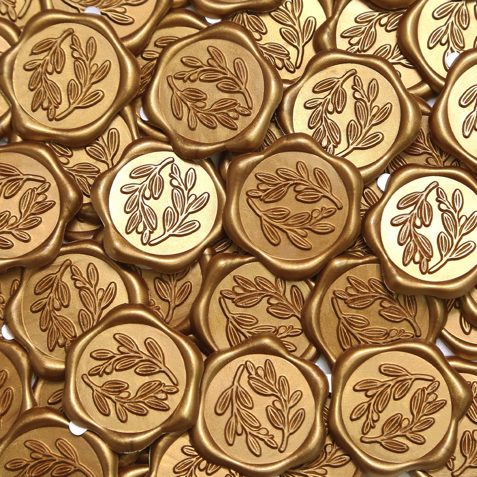 Wax Seal Stickers - Wedding Invitation Envelope Seal Stickers Self Adhesive Prosecco Metallic Light Stickers, Olive Branch, 50pcs