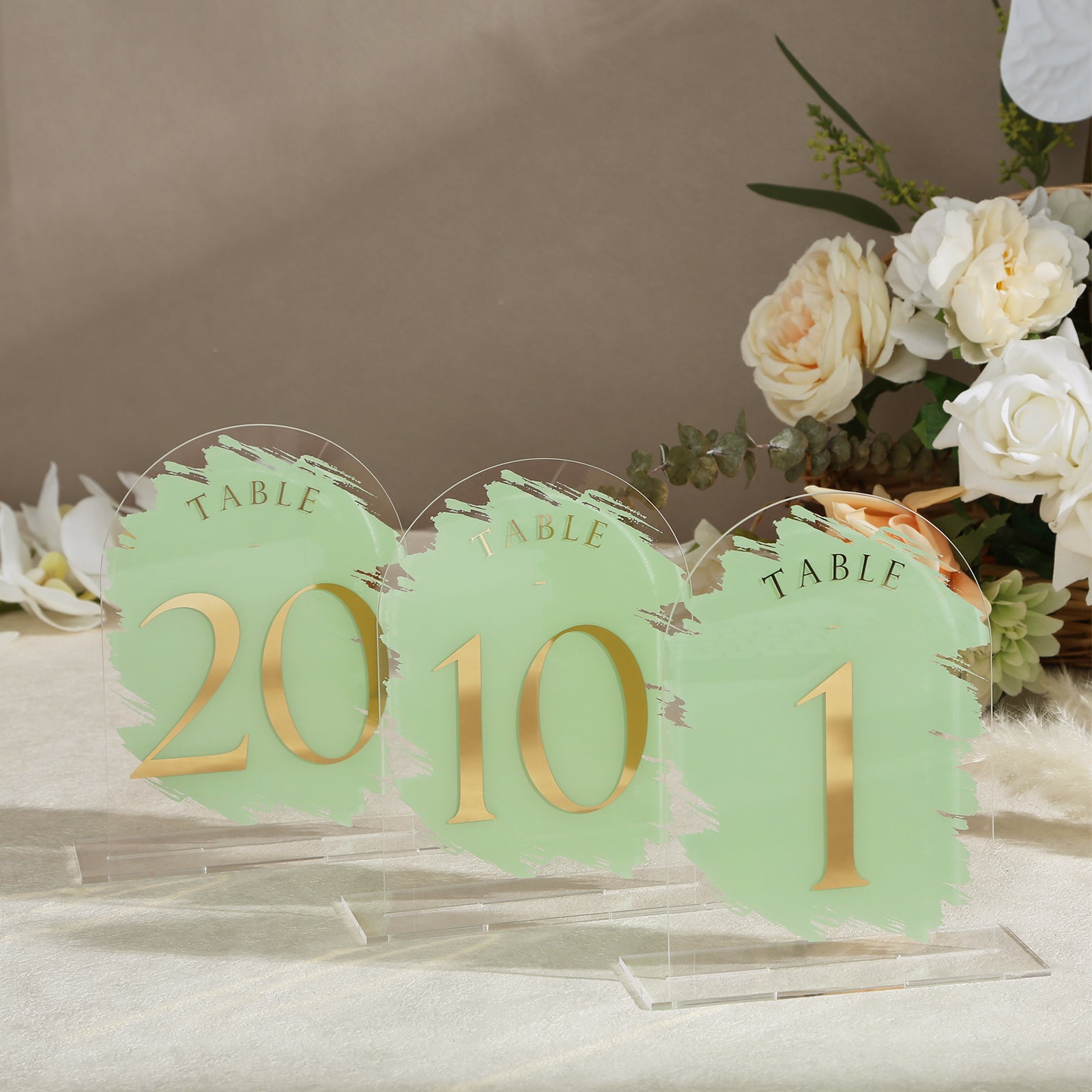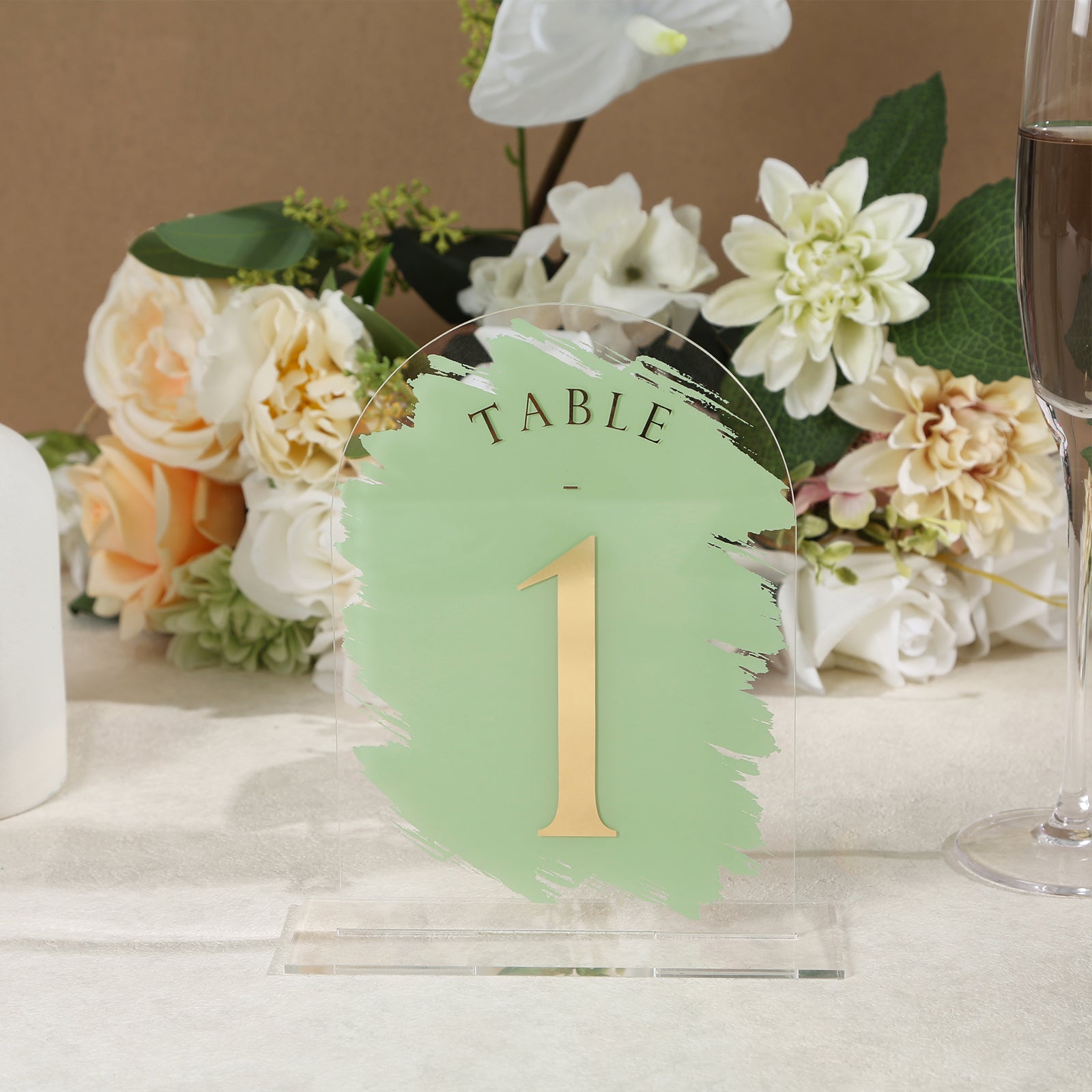 Sage Green Painted Arch Wedding Table Numbers with Stands 1-15
