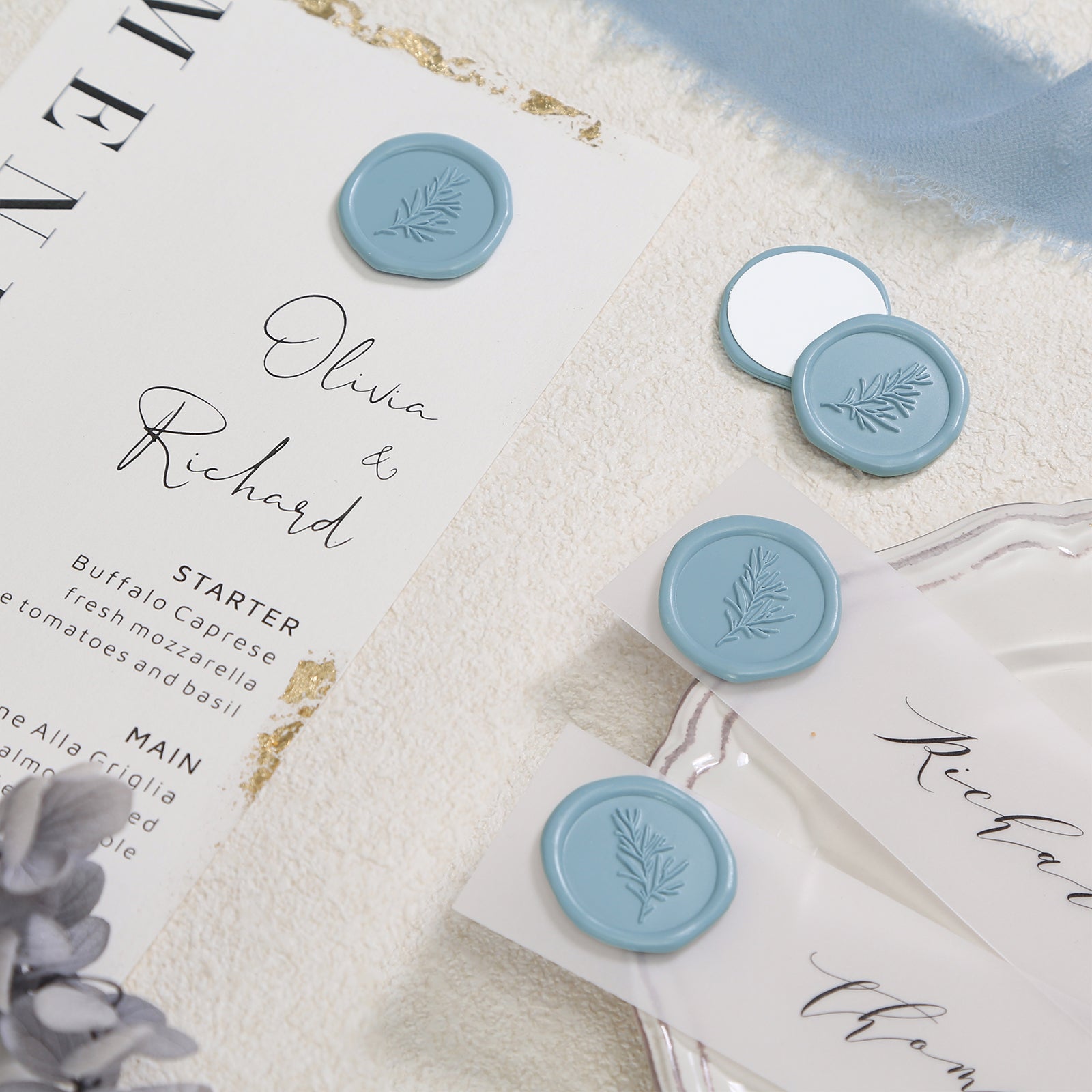 Wax Seal Stickers - Wedding Invitation Envelope Seal Stickers Self Adhesive Dusty Blue Stickers, Eucalyptus, 100pcs